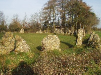 Astronomical Connections If we use the layout of the Rollright circle as our model for the larger landscape circle some fascinating features can be observed. The diagonal from Chipping Campden to Bledington church is on a bearing of 152°. Superimposing this bearing onto the Rollright stones we find that both the Bledington and Chipping Campden points are marked by significant stone. We do not know for certain how much the Rollrights have been damaged and what stones have been removed or repositioned but by way of assessment we can mark on the positions of all the sites on the large landscape circle to see how this fits with the stone positions of the Rollrights. Applying this technique I am now sure that the Rollrights were used as a model for the larger landscape circle. The Pattern Continues There is not space in this work to fully consider the various aspects this pattern but its existence lends substantial weight to the concept of vast landscape patterning carried out in the Neolithic period. Although these sites are not all of ancient origin, the design they display fits well with what we have already discovered from the Marlborough Downs circles. The Neolithic peoples were certainly in evidence in this area, for long barrows are scattered across the region, with a significant group focused around Swell Hill Farm and another group just to the west of Stow-on-the -Wold. The Cotswolds region is a very striking, with mellow dry stone walls bordering wide open fields. The natural stone buildings have a unique charm that makes this a very desirable place to live. One of the highest point in the area, which also sits very neatly on the circumference of our circle, is Cutsdean Hill at 305 metres above sea level. From here the land slopes gently down towards the east, cut here and there by river valleys. The ancient Roman Road the Fosse Way, runs diagonally through the centre of the circle, passing within 200 metres of the central node point. The Fosse Way is the main artery to the two principle towns to be found here. Moreton-in-Marsh, the largest is about 1.5 kilometres north of the centre, whilst the pleasant market town of Stow-on-the-Wold is a further 5.5 kilometres to the south. On the northwestern edge lies Chipping Campden, which has already been mentioned. In all a further seven key sites mark the circumference of this landscape circle in addition to the road, the churches of Bledington and Chipping Campden and the megalithic sites of the Rollrights and Heaver Wood. These additional sites include a Neolithic settlement adjoining the Fosse Way; the enigmatically named Salter's Pool with its adjoining Round Barrow and a recumbent stone on the top of Cutsdean Hill, which is the highest point in the area. The discovery of identically sized landscape circles in two distinct areas suggests that other may well have been created. This offers scope for further research into this type of patterning. The more that this research uncovers the greater must be our respect for these ancient people who wove harmonious patterns across the British landscape. The Cotswold circle like those on the Marlborough Downs, is in a similar ratio to the Earth by the enigmatic number 666. It also incorporates relationships to star patterns in its design and execution. Despite our modern technological achievements these fall short of what Neolithic people were able to achieve. A harmonious balance to the Earth © David Furlong 1998 Useful Links