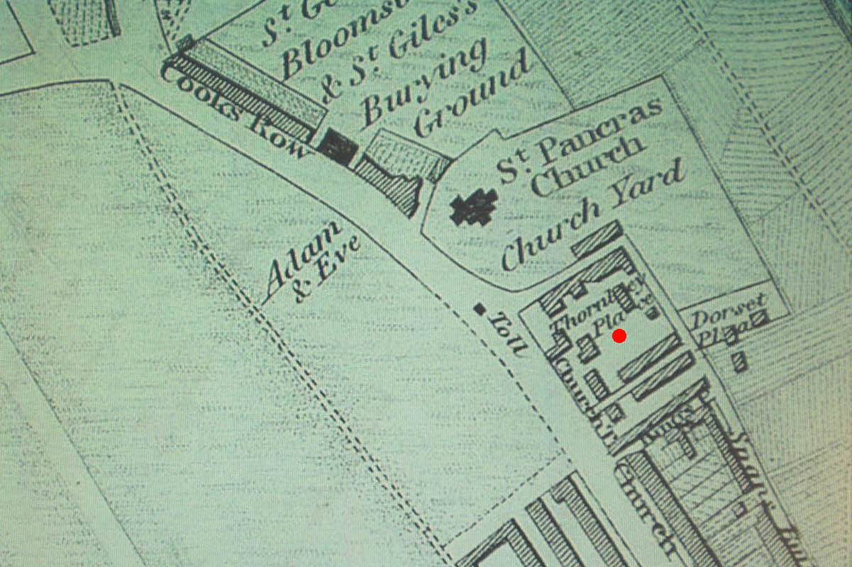 - The exact site of this well has been hard to determine, excepting that it lay to the south and reasonably close to the old St Pancras church. It resided in the garden of the house probably immediately to the south of the churchyard known as Thornley Place (see map). It was described for its healing properties 'in the greatest perfection and highly recommended by the most eminent physicians in the Kingdom'. It now, almost certainly, lies under the new railway development of St. Pancras station.