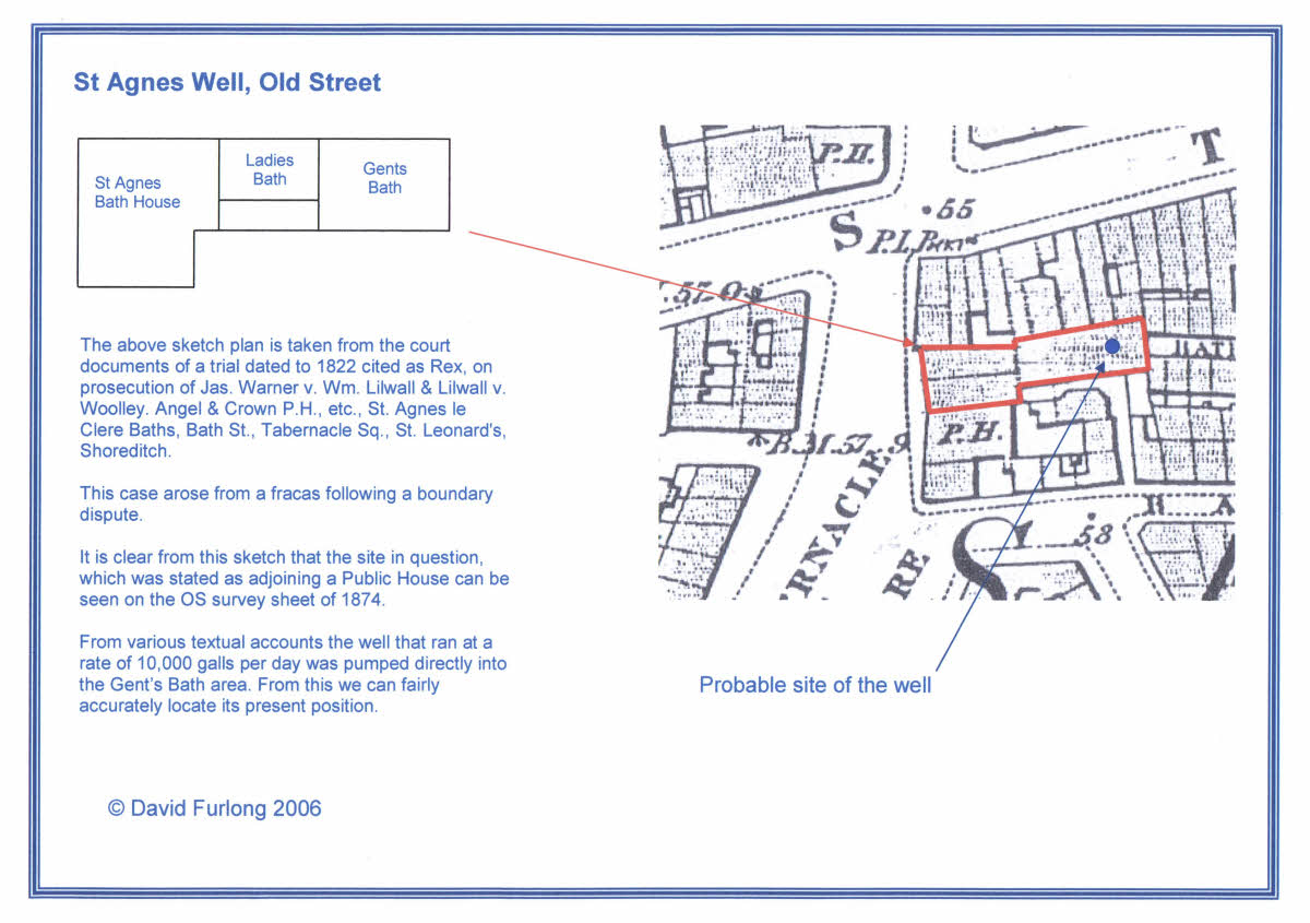 OS sheet 1874 shown the position of St. Agnes Well, Old Street. Click image for a detailed plan.