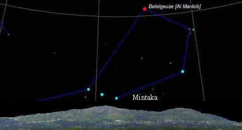 | Fig.2 The star Mintaka in the belt or Orion would have set on the Michael alignment in 2800 BCE and could have provided an accurate sighting measure for setting out a long distant alignment. |