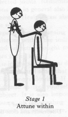 To begin the healing process it is preferable to have the client either sitting in a straight chair or lying on the floor or couch. As the healer you need to be in a position that is comfortable for you. Place your hands on their shoulders as a preliminary to starting the healing. Touch is very important and creates and initial bond.
